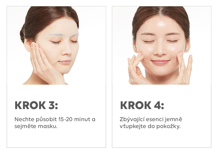 Po vyčištění pleti a aplikaci toneru vyndejte masku z obalu a jemně přiložte na obličej. Nechte působit 15 - 20 minut. Poté masku sundejte a zbývající esenci vklepejte do pokožky. Nesmývejte. Masku lze aplikovat cca 2-3x týdně.